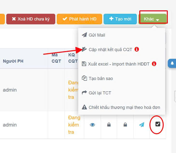 ES0022 | Cập nhật lại Kết quả CQT cho hóa đơn "Đang kiểm tra"