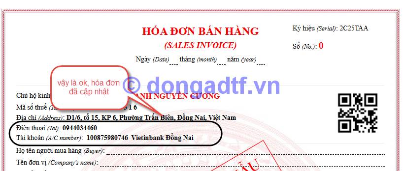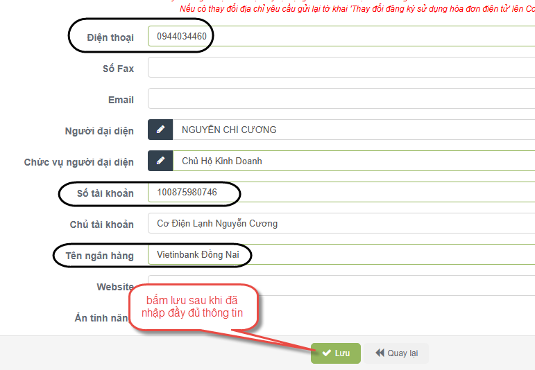 ES0026 | Cập nhật tài khoản ngân hàng, số điện thoại lên hóa đơn điện tử